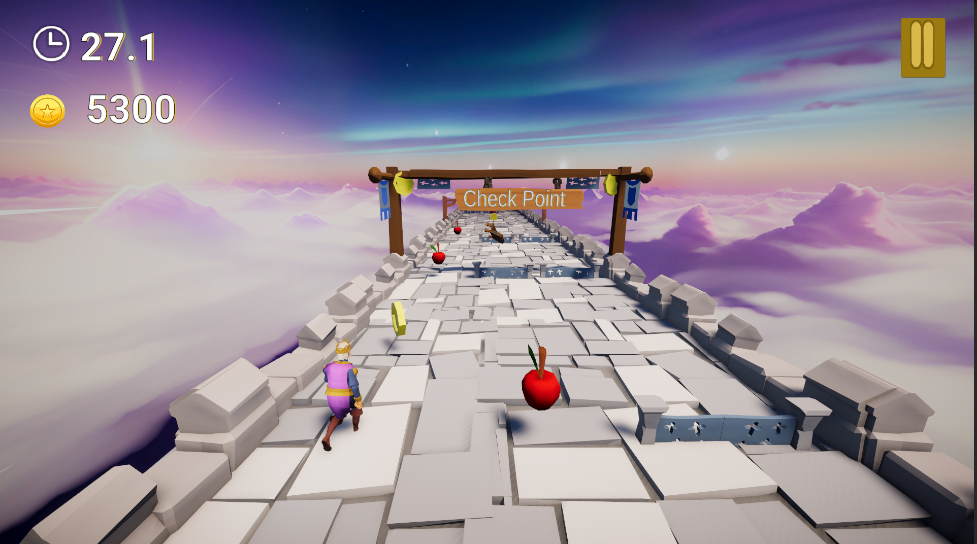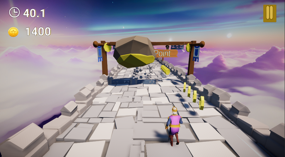 Royal Run is a fast-paced, time-based endless runner where players race through a procedurally generated royal path, collecting coins and checkpoints to extend their survival time while avoiding obstacles that slow them down. The goal is to maximize score and survival time through skillful movement and smart risk-taking.